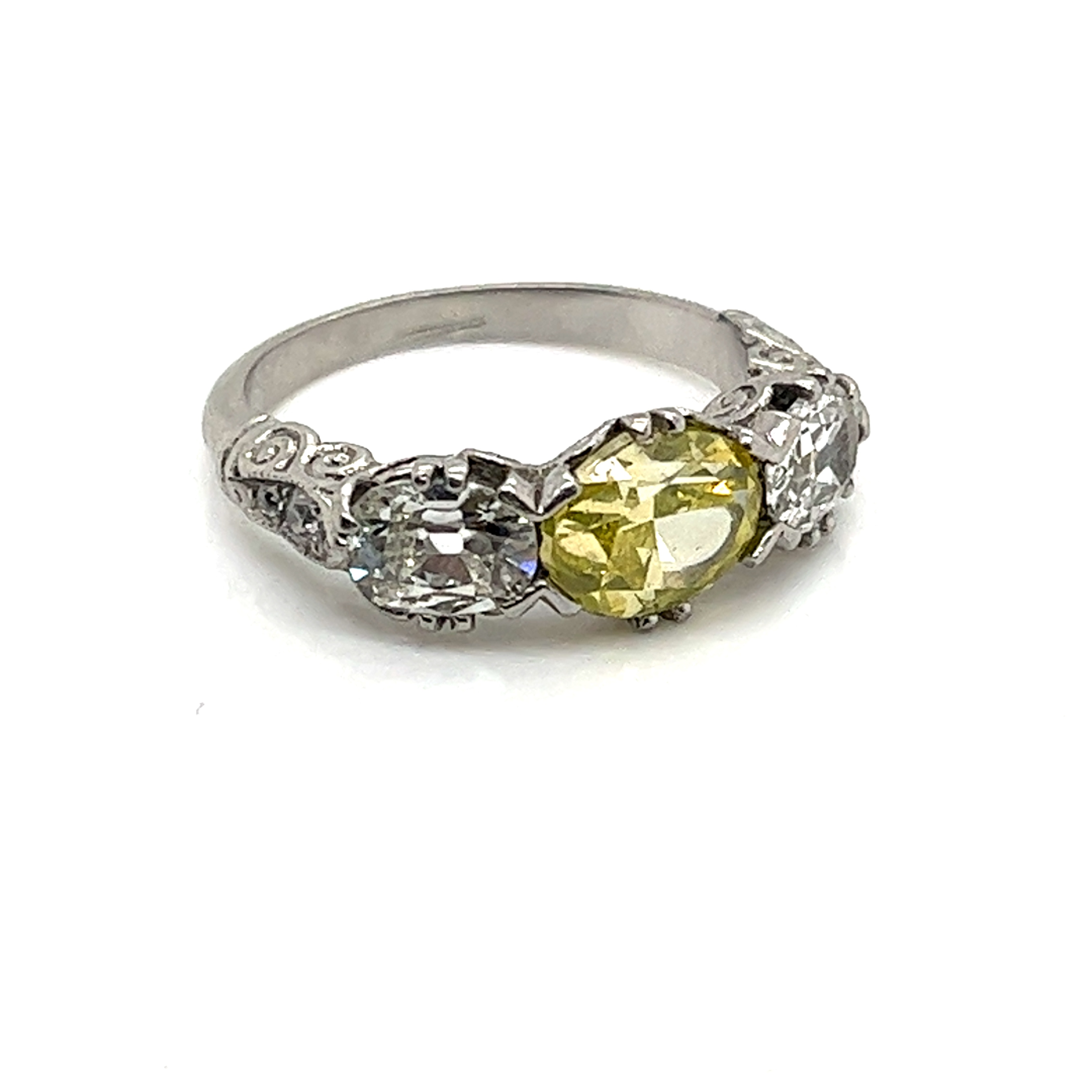Description : Platinum Art Deco 1.27 Intense Yellow Diamond & 1.08 White Diamond Ring - 4.90crs - Size 6