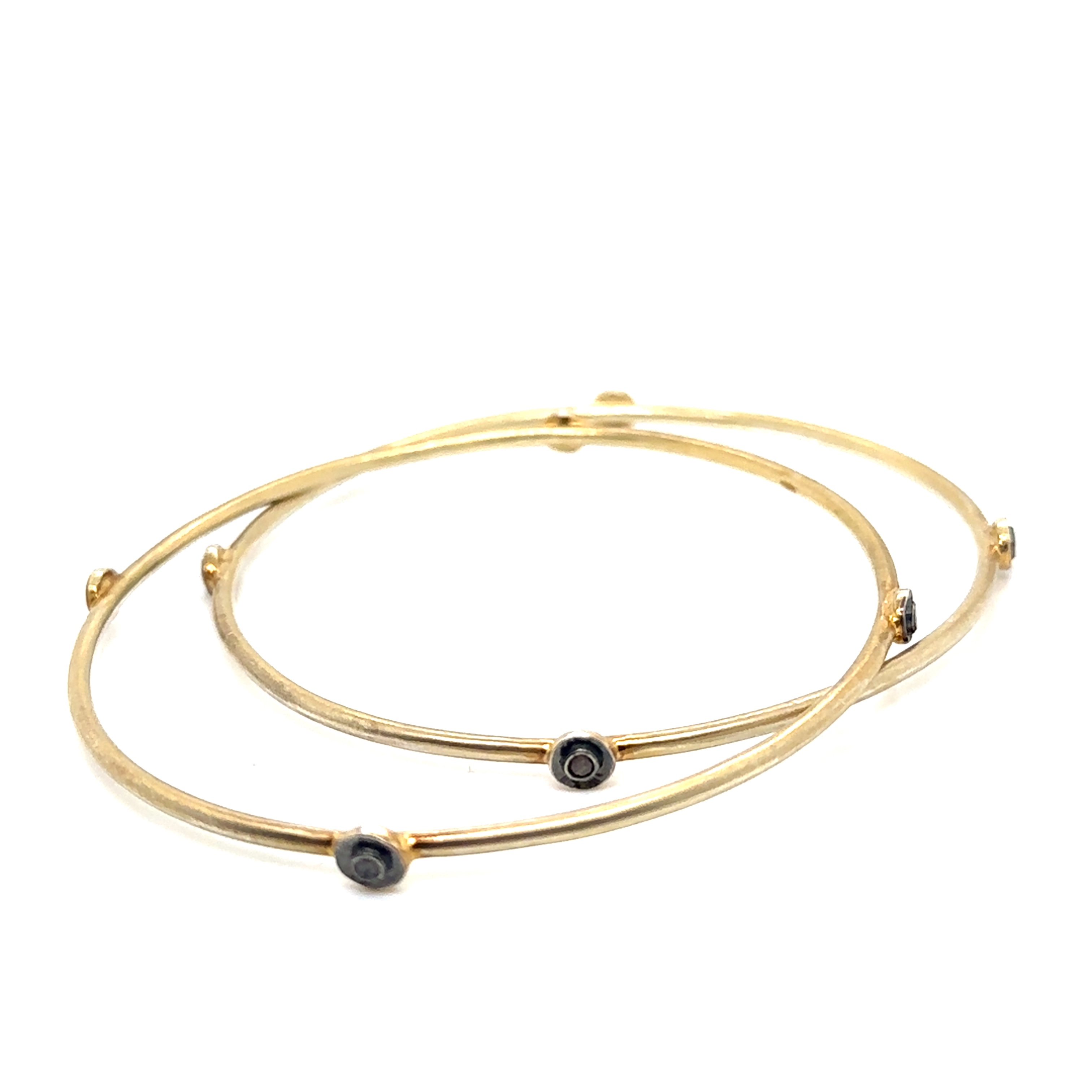 Description : Pair of Vermeil Vintage Enamel Champagne Diamond Bangles Dia 0.40 ct