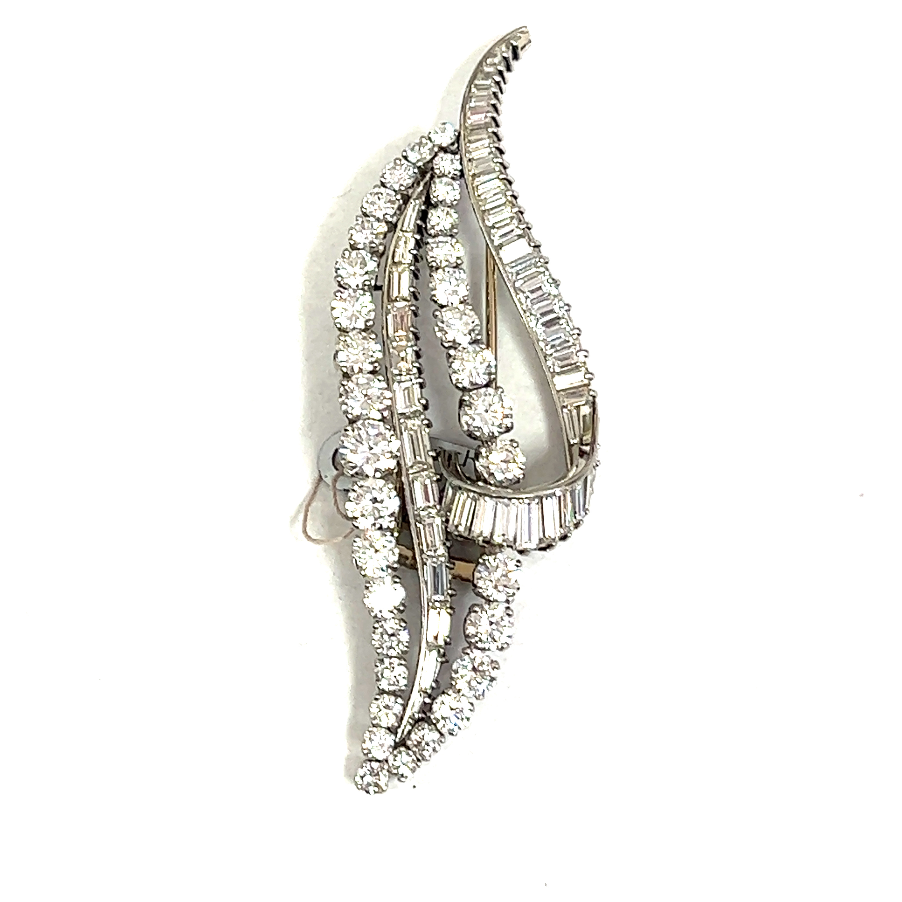 Description : Platinum French Art Deco Leaf Diamond Pin / Brooch